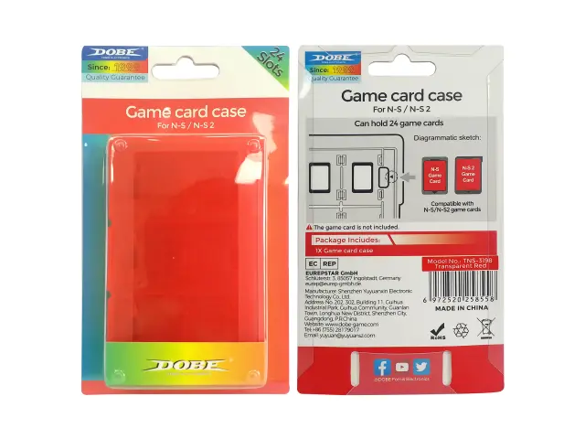 Varna zaščita kartic: Etui za igralne kartice Switch2 zagotavlja odlično zaščito za vaše dragocene igralne kartuše. Trpežen material ABS in tesno prilegajoče se reže preprečujejo premikanje ali izpadanje kartic med transportom. To pomaga pri zaščiti pred morebitnimi poškodbami zaradi udarcev, vibracij in drugih nevarnosti. Prozorna rdeča barva vam omogoča tudi hitro prepoznavanje iger, ki jih iščete, ne da bi vam bilo treba odpreti etui.