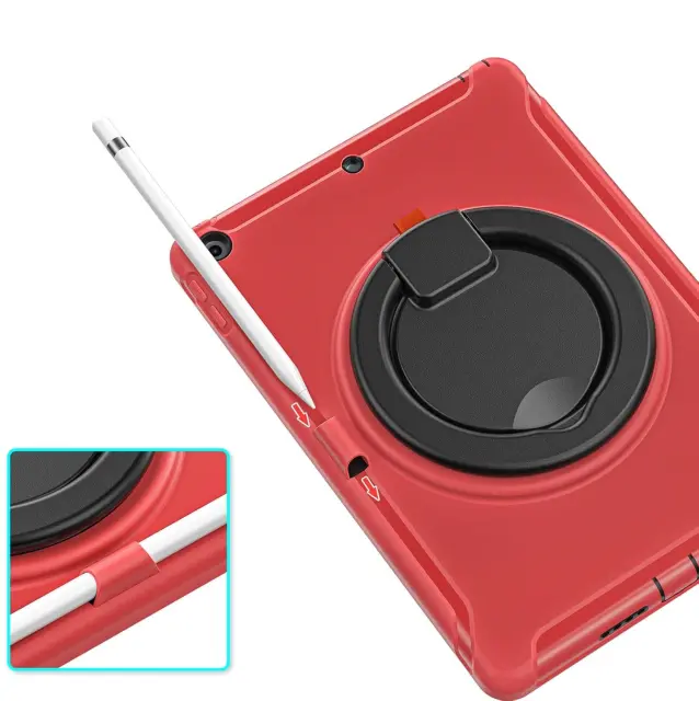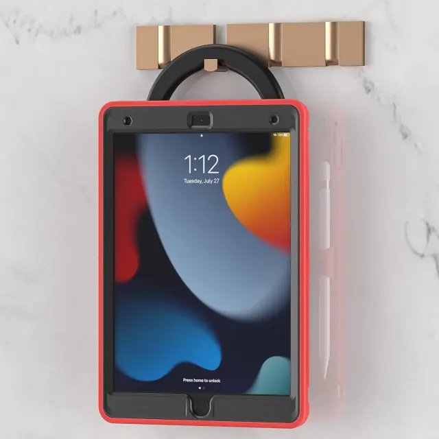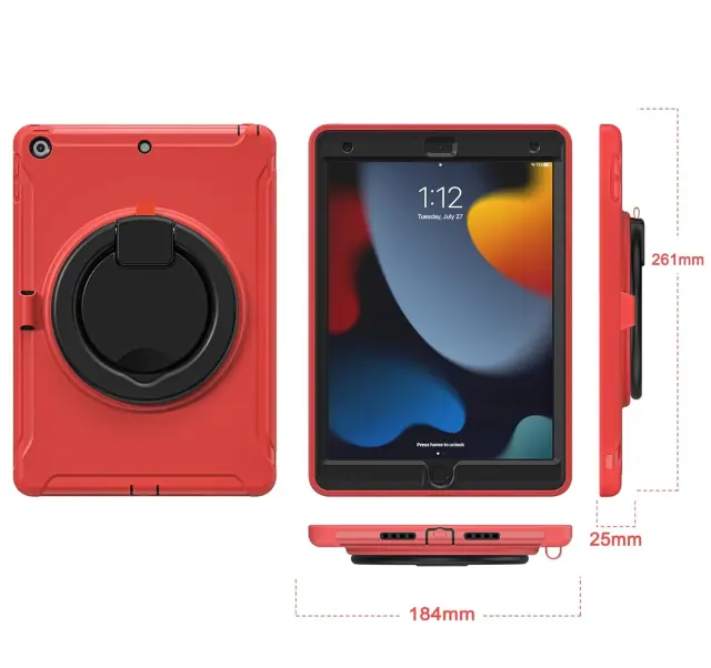 Ta visokokakovosten zaščitni ovitek je zasnovan za zagotavljanje visoke stopnje varnosti vaše naprave iPad 10,2 pri vsakodnevni uporabi. Sestavljen je iz treh plasti materialov, ki vključujejo plastično ohišje PC in mehak silikonski hrbet za učinkovito zaščito pred praskami, udarci ter vibracijami. Izdelek odlikuje premišljena zasnova, ki vključuje vgrajeno stojalo z možnostjo vrtenja, kar omogoča prilagodljive kote gledanja in tipkanja. Natančno izdelani izrezi zagotavljajo neoviran dostop do vseh kontrolnih gumbov in priključkov naprave.