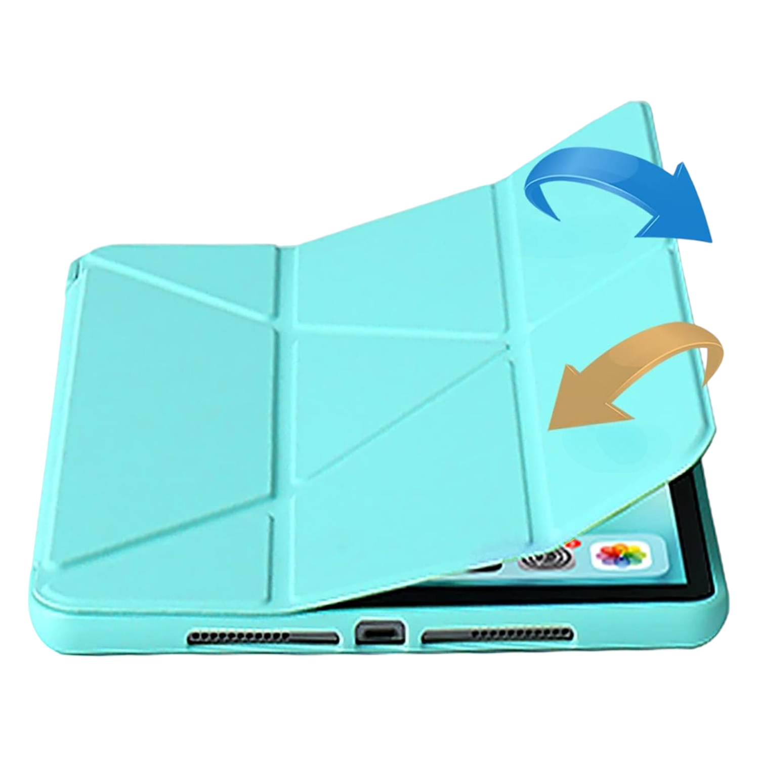 Turkizen zaščitni ovitek za iPad 11 palcev predstavlja elegantno in funkcionalno rešitev za vse uporabnike, ki cenijo udobje in varnost svoje naprave. Izdelek je izdelan iz mehkega ter prilagodljivega silikona, ki se popolnoma prilagaja obliki tablice in zagotavlja učinkovito osnovno zaščito. Sprednji pokrov s sistemom origami omogoča različne načine postavitve naprave, kar poveča uporabnost pri vsakodnevnih opravilih. Ovitek je primeren za različne načine uporabe, od pisanja sporočil do branja digitalnih vsebin ali gledanja multimedijskih posnetkov.