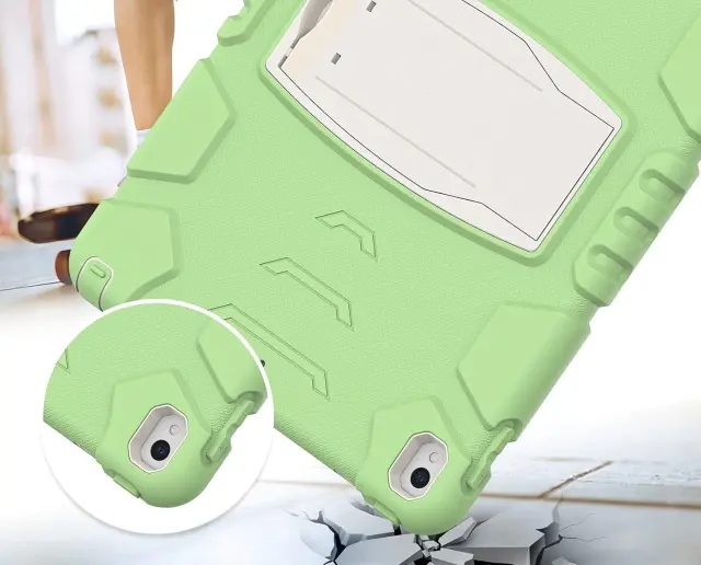 Ta edinstven etui za tablični računalnik združuje visoko mero trpežnosti, funkcionalnosti in sodobnega sloga v enem izdelku. Zasnovan je za zagotavljanje maksimalne zaščite naprave med vsakodnevno uporabo, ne glede na to, ali tablico uporabljate za delo ali zabavo. Izdelek je izdelan iz zelo močnih materialov, kot sta silikon in plastika, ki zagotavljata dolgotrajno vzdržljivost in zanesljivost. Njegova dinamična oblika v zeleni barvi doda napravi sodoben videz, hkrati pa ohranja popolno uporabnost v vseh pogojih.