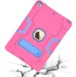 Ta edinstven ovitek za tablični računalnik združuje visoko mero trpežnosti, funkcionalnosti in sodobnega sloga. Zasnovan je za zagotavljanje maksimalne zaščite naprave, saj je izdelan iz kombinacije zelo močnih materialov, kot sta silikon in plastika. Tridelna robustna konstrukcija je bila razvita z namenom, da učinkovito ščiti tablico pred nepredvidenimi poškodbami, kot so padci, udarci ali praske, medtem ko vgrajeno stojalo omogoča udobno gledanje videoposnetkov. Izdelek je zaradi svoje odpornosti in praktične zasnove idealna rešitev za vsakodnevno uporabo v različnih okoljih, vključno z delovnimi prostori ali domovi z otroki.