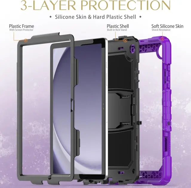 Ta visokokakovosten zaščitni ovitek je zasnovan za zagotavljanje celovite varnosti vaše tablične naprave med vsakodnevno uporabo. Njegova napredna trislojna sestava združuje trdno plastično ohišje in mehko silikonsko hrbtišče, kar učinkovito ublaži tresljaje in preprečuje poškodbe ob udarcih. Izdelek je idealen za različne dejavnosti na prostem, kot so pohodništvo in izleti, saj vključuje prilagodljiv naramni trak za lažje prenašanje. Ergonomska zasnova s 360-stopinjskim vrtljivim stojalom omogoča prilagajanje kota gledanja glede na vaše trenutne potrebe.