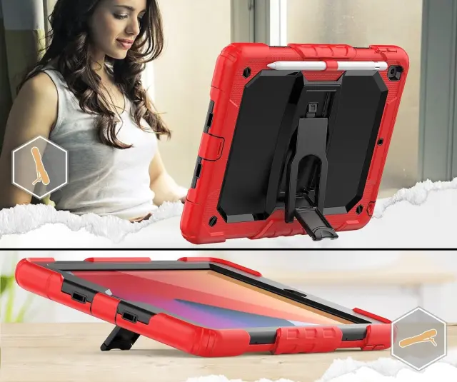 Izberite ta ovitek s stojalom, ki zagotavlja popolno zaščito, moderen slog in izjemno udobje uporabe v vseh okoliščinah. Zahvaljujoč premišljenim rešitvam ovitek učinkovito varuje vašo tablico pred poškodbami, medtem ko natančna obdelava poskrbi za sodoben videz vaše naprave. Zagotovite svojemu tabličnemu računalniku dolgotrajno varnost in naročite svoj robusten rdeč ovitek še danes.
