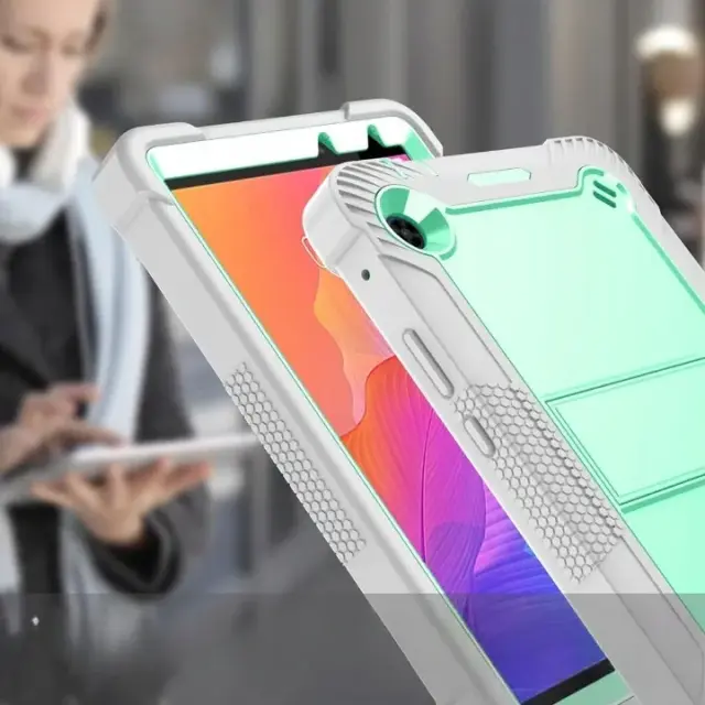 Ta visokokakovosten ovitni ovitek je zasnovan za zagotavljanje celovite zaščite vaše naprave med vsakodnevno uporabo v različnih okoljih. Sestavljen je iz napredne trislojne strukture, ki vključuje ohišje iz trde PC plastike in mehko silikonsko hrbtišče za učinkovito ublažitev udarcev in tresljajev. Izdelek je posebej primeren za aktivne uporabnike, saj vgrajeno zložljivo stojalo in nastavljiv naramni trak omogočata prilagodljivo uporabo naprave na terenu, doma ali v pisarni. Natančno izdelani izrezi zagotavljajo, da vsi gumbi in priključki ostanejo popolnoma dostopni brez odstranjevanja zaščitnega ohišja.