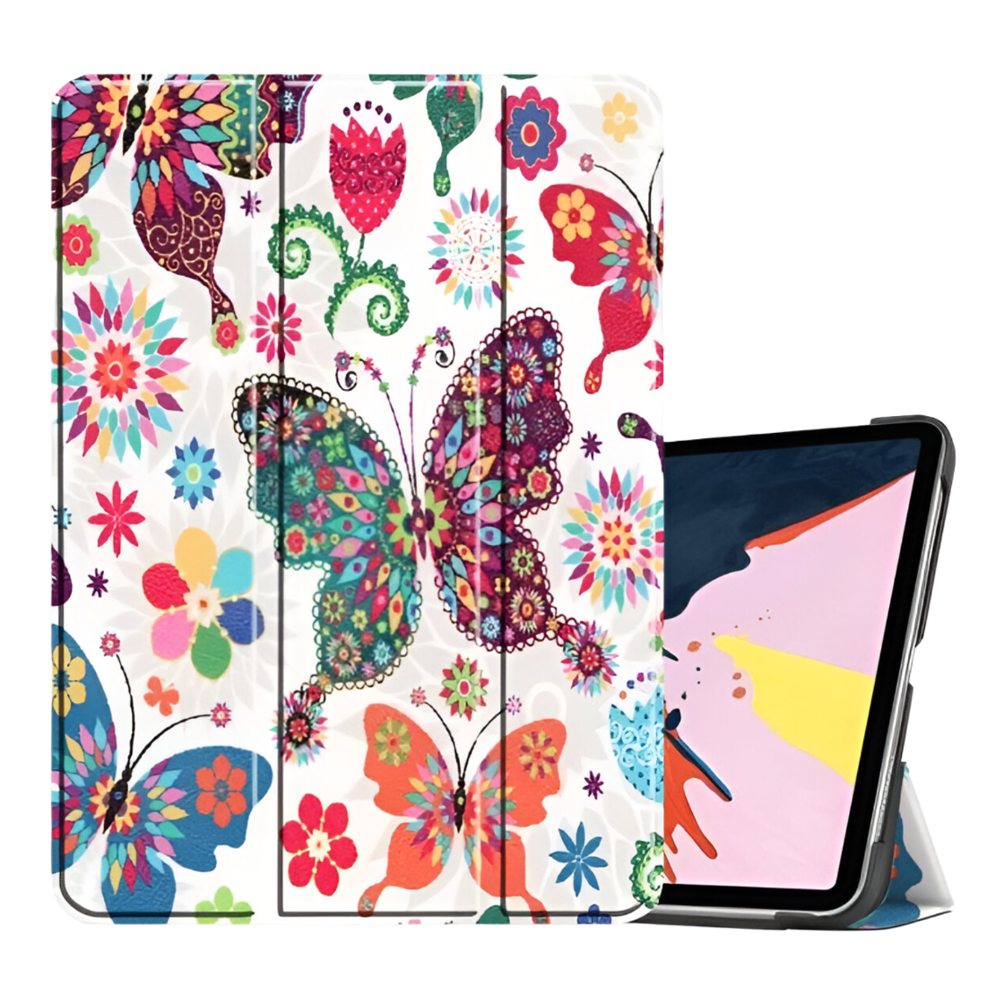 Ta stilski zaščitni ovitek z motivom metuljev in cvetja je zasnovan posebej za tablična računalnika iPad Air četrte generacije iz leta 2020 in pete generacije iz leta 2022. Izdelan je iz kombinacije trpežnega ekološkega usnja in trde umetne mase, kar omogoča učinkovito vsakodnevno uporabo in zaščito naprave. Sprednji pokrov z mehko notranjo podlogo varuje zaslon pred nečistočami, medtem ko zadnji del ohišja nudi stabilno oporo in varnost celotni napravi. Ovitek je primeren za vse, ki iščejo estetsko dovršeno rešitev za varno prenašanje in uporabo svoje tablice v različnih okoljih.