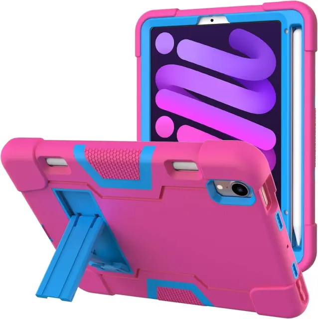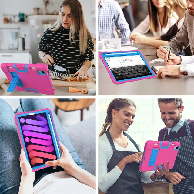 Ta trpežen ovitek za tablični računalnik iPad Mini 6 s 8,3-palčnim zaslonom združuje visoko stopnjo zaščite s praktično funkcionalnostjo za vsakodnevno uporabo. Izdelan je iz kombinacije močnega silikona in trdne plastike, kar zagotavlja stabilnost in odpornost na zunanje vplive v različnih okoljih. Ovitek je zasnovan za uporabnike, ki potrebujejo zanesljivo rešitev za zaščito svoje naprave pri delu, zabavi ali kadar tablico uporabljajo otroci. Njegova premišljena oblika ne omejuje dostopa do funkcij naprave, temveč izboljšuje splošno uporabniško izkušnjo s praktičnimi dodatki.