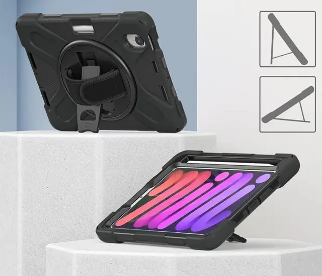 Ta visokokakovosten zaščitni ovitek je posebej zasnovan za napravo iPad Mini 6 z diagonalo zaslona 8,3 palca. Njegova konstrukcija temelji na treh različnih plasteh, ki vključujejo trdno plastično ohišje in mehko silikonsko hrbtišče za ublažitev zunanjih vplivov. Izdelek je namenjen vsakodnevni uporabi v različnih okoljih, saj učinkovito ščiti tablico pred praskami, udarci in neželenimi vibracijami. Zaradi svoje premišljene zasnove je primeren tako za poslovne uporabnike kot za otroke, ki potrebujejo dodatno varnost pri rokovanju z napravo.