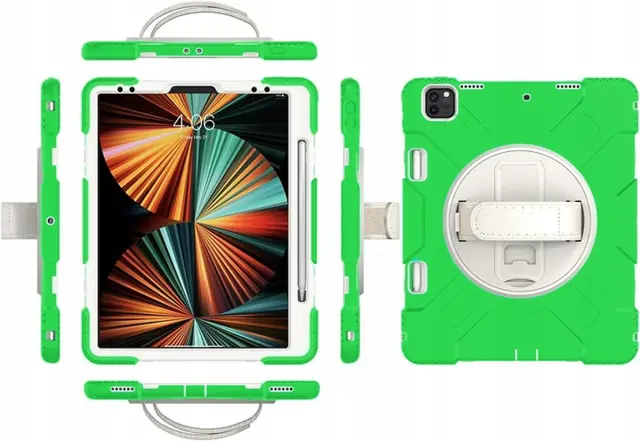 Ta visokokakovosten zaščitni ovitek je zasnovan za zagotavljanje celovite varnosti vaše naprave med vsakodnevno uporabo v različnih okoljih. Sestavljen je iz treh plasti, ki vključujejo trdno plastično ohišje PC in mehko silikonsko hrbtišče za učinkovito ublažitev zunanjih vplivov. Izdelek je posebej primeren za aktivne uporabnike, saj vgrajeno zložljivo stojalo in nastavljiv naramni pas omogočata prilagodljivo uporabo na terenu ali v pisarni. Zasnova vključuje tudi namensko držalo za pisalo in natančne izreze, ki omogočajo neoviran dostop do vseh funkcij in priključkov tabličnega računalnika.