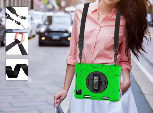 Ta trpežni ovitek predstavlja optimalno rešitev za uporabnike, ki potrebujejo popolno zaščito in visoko stopnjo funkcionalnosti v enem izdelku. Trislojna zasnova v kombinaciji z ergonomskim ročajem in prilagodljivim trakom zagotavlja varnost vaše naprave med vsemi aktivnostmi. Preizkusite prednosti tega vsestranskega ohišja in poskrbite za varnost svoje naprave še danes.