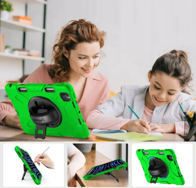 Ta visokokakovosten zaščitni ovitek je zasnovan posebej za napravo iPad Mini 6 z diagonalo zaslona 8,3 palca in ji zagotavlja visoko raven zaščite pri vsakodnevni uporabi. Njegova sestava vključuje tri različne plasti, ki združujejo trdno plastično ohišje in mehko silikonsko hrbtišče za ublažitev zunanjih vplivov. Izdelek je primeren za različne situacije, od pisarniškega dela in konferenc do zahtevnejših dejavnosti na prostem, kot sta pohodništvo ali potovanja. Uporabnikom omogoča varno prenašanje naprave, hkrati pa nudi večjo funkcionalnost pri gledanju vsebin ali tipkanju.