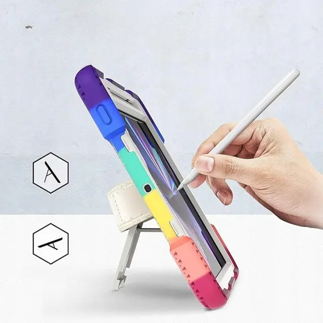 Ta visokokakovosten ovitek je zasnovan tako, da vaši napravi zagotavlja najvišjo raven zaščite med vsakodnevno uporabo. Sestavljen je iz treh plasti, ki vključujejo trpežno plastično ohišje in mehko silikonsko hrbtišče za učinkovito ublažitev tresljajev. Izdelek je idealen za različne aktivnosti na prostem, kot so pohodništvo in izleti, saj tablični računalnik ščiti pred praskami, udarci in drugimi zunanjimi vplivi. Njegova premišljena zasnova omogoča varno uporabo v vseh pogojih, ne glede na to, ali ste na poti ali v pisarni.