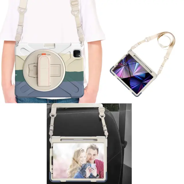 Ta ovitek je zasnovan za zagotavljanje visoke stopnje zaščite vaše naprave med vsakodnevno uporabo. Sestavljen je iz treh plasti, ki vključujejo trpežno plastično ohišje PC in mehko silikonsko hrbtišče za ublažitev udarcev, prask ter vibracij. Izdelek vključuje vgrajeno zložljivo stojalo z možnostjo vrtenja za 360 stopinj, kar omogoča različne kote uporabe in večje udobje. Natančno izdelani izrezi zagotavljajo popolno prileganje vsem vratom in gumbom, medtem ko nastavljiv naramni trak omogoča enostavno prenašanje naprave na prostem.