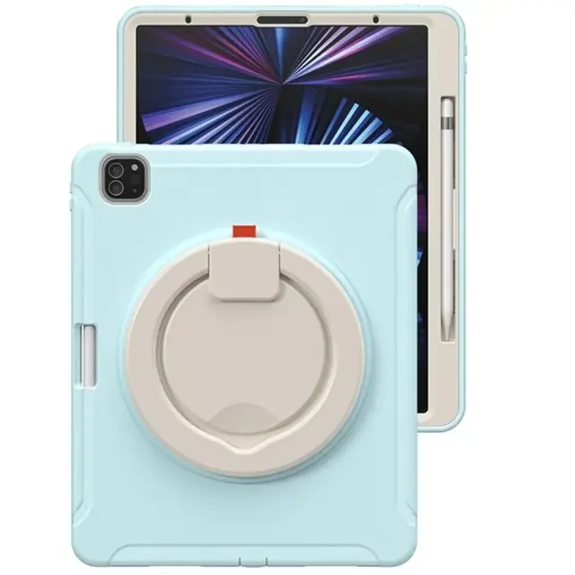 Ta trpežen ovitek predstavlja odlično kombinacijo popolne zaščite in vsakodnevne funkcionalnosti za vašo napravo. Trislojna zasnova in ergonomski ročaj zagotavljata brezskrbno uporabo v vseh pogojih, medtem ko prostor za pisalo poskrbi za dodatno urejenost. Izberite ta modri ovitek za večjo varnost in sodoben videz vašega tabličnega računalnika še danes.