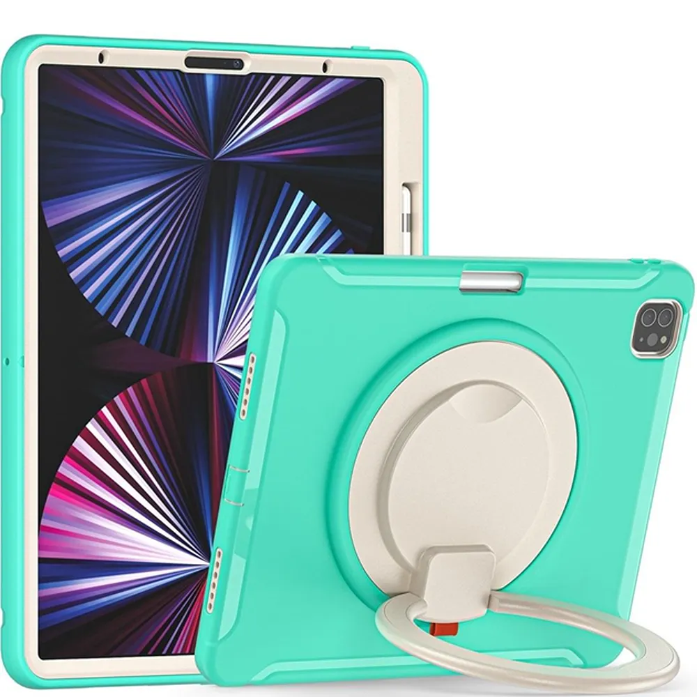 Ovitni ovitek v mentol barvi je zasnovan za zagotavljanje visoke stopnje zaščite vaše naprave iPad Pro 12.9 med vsakodnevno uporabo. Njegova sestava vključuje tri različne plasti, ki združujejo trdno plastično ohišje in mehko silikonsko hrbtišče za ublažitev zunanjih vplivov. Izdelek je opremljen z vgrajenim stojalom, ki se vrti za polnih 360 stopinj, kar omogoča prilagodljivo postavitev tablice pod različnimi koti. Takšna zasnova je primerna tako za delo v pisarni kot za zabavo doma ali uporabo na potovanjih.