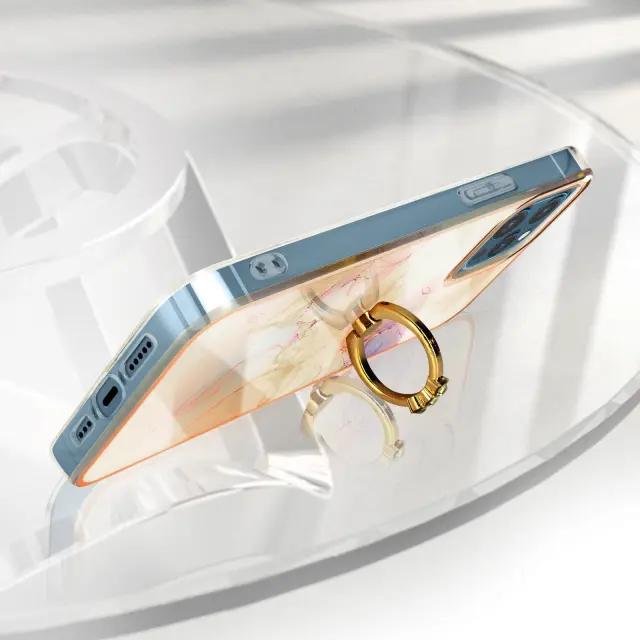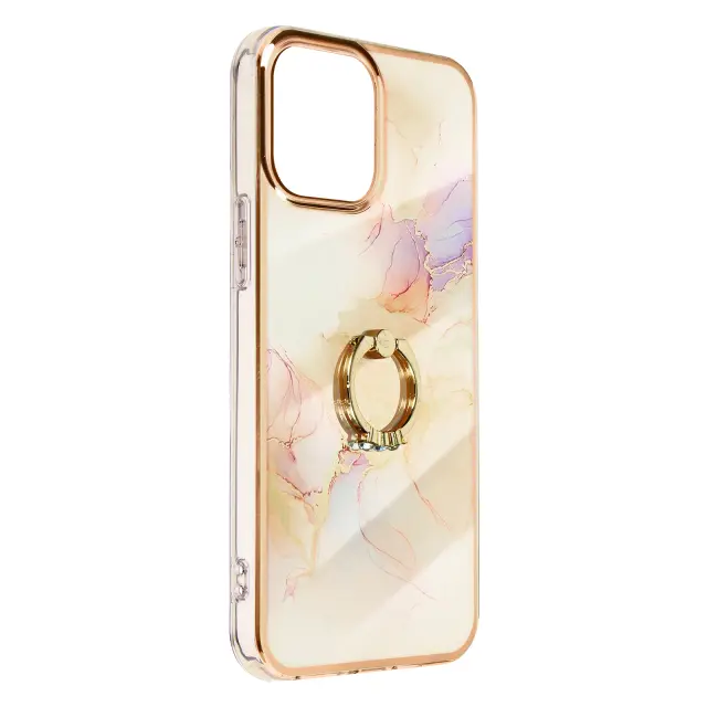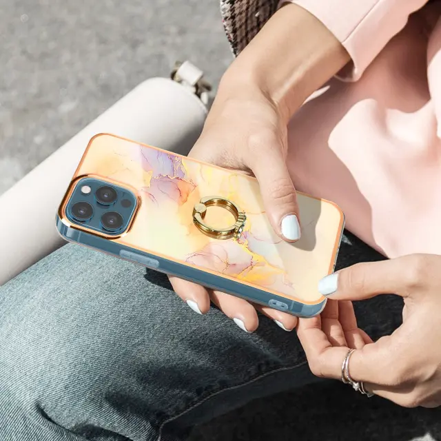 Ta šampanjsko roza marmorni ovitek za iPhone 12 in 12 Pro doda mobilnemu telefonu edinstven in prefinjen pridih. Ima zadrževalni obrocek z ucinkom dragulja z kamencki za razkošen pridih. Vsestransko uporaben prstan se lahko uporablja kot video podpora