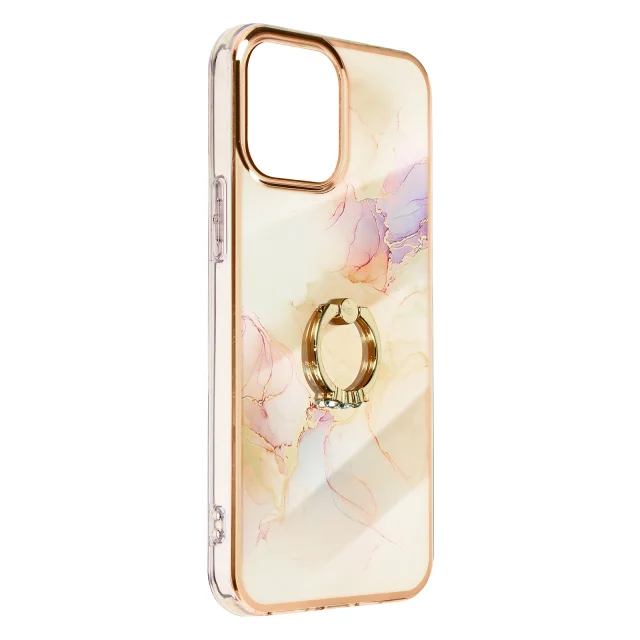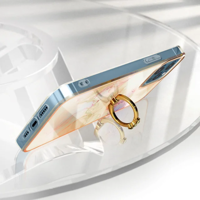 Ovitek za iPhone 12 z vzorcem marmorja ''šampanjec'', podporni obroc