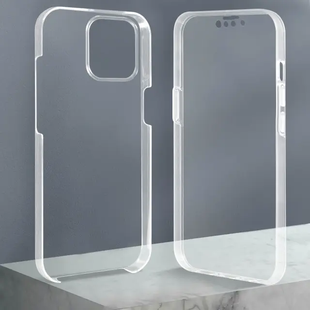 Integralni ovitek za iPhone 13. Ta 360° zašcita ima hrbtno stran iz trdega polikarbonata, ki je odporen na udarce, in sprednjo stran iz nezlomljivega polimera, ki prekriva zaslon in stran telefona.