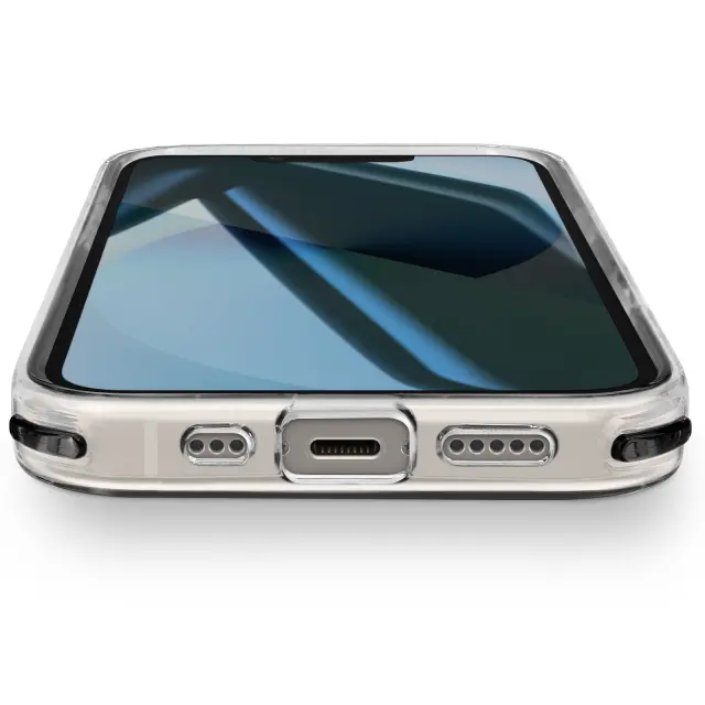 Struktura iz dveh materialov, mehkega silikona in togega polikarbonata, za trajno zaščito pred udarci in praskami. Ojačani vogali so posebej zasnovani tako, da absorbirajo udarce in zmanjšajo tveganje v primeru padca.. Teksturirane nedrseče oblike za varen in udoben oprijem pri vsakodnevni uporabi. Dvignjeni robovi za zaščito zaslona in kamere.