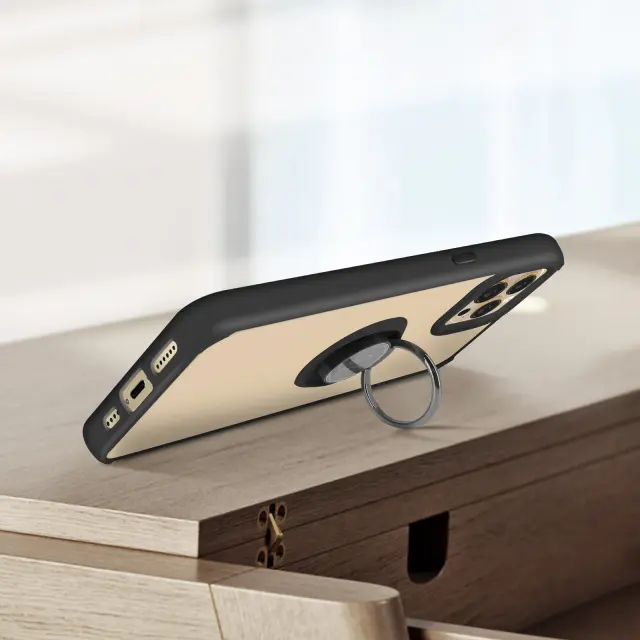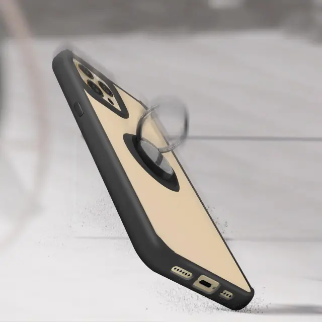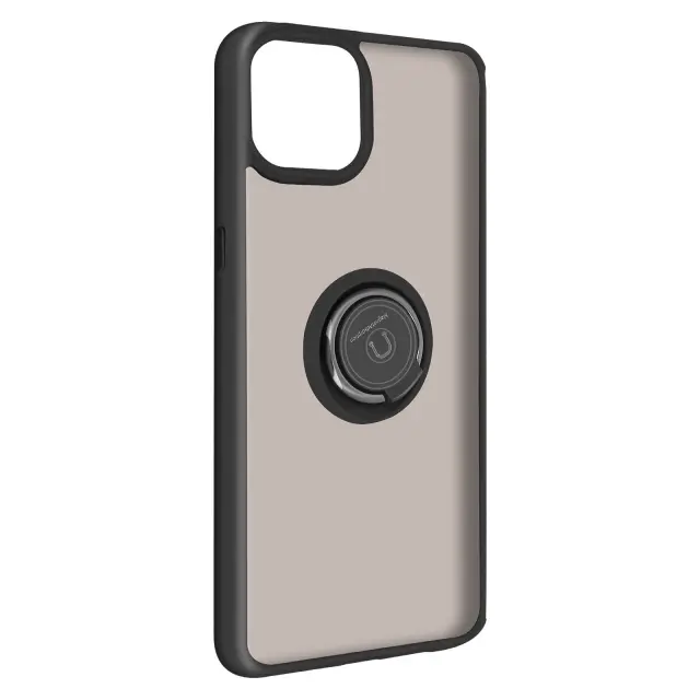 Polikarbonatno ohišje Apple iPhone 13 Pro crn Njegov prozoren in dimljen videz ter mat robovi dajejo moderen videz. Gumbi so odstranljivi in zamenljivi. Opremljen je z zadrževalnim obrocem, ki deluje tudi kot opora za video.