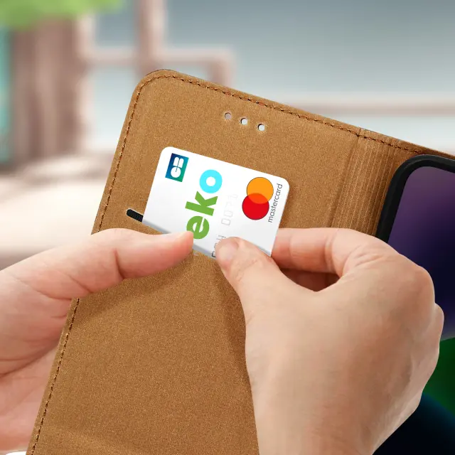Ovitek za iPhone 14 iz pravega usnja, prostor za shranjevanje kartic - crn
