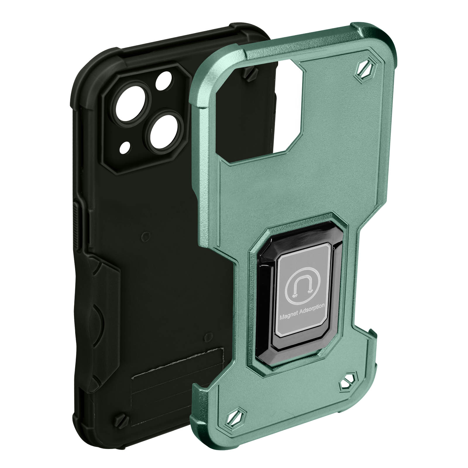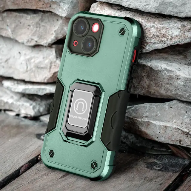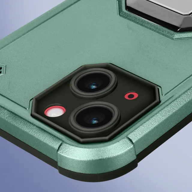 Zaščitna torbica, odporna na udarce, zasnovana za iPhone 14. Zasnova iz dveh materialov iz polikarbonata in silikonskega gela z ojačenimi vogali. Zaščitena zaščita za zaslon fotoaparata, ki pokriva leče / dvignjene konture zaslona. Vgrajen podporni obroč na zadnji strani ohišja za stabilen in varen oprijem.
