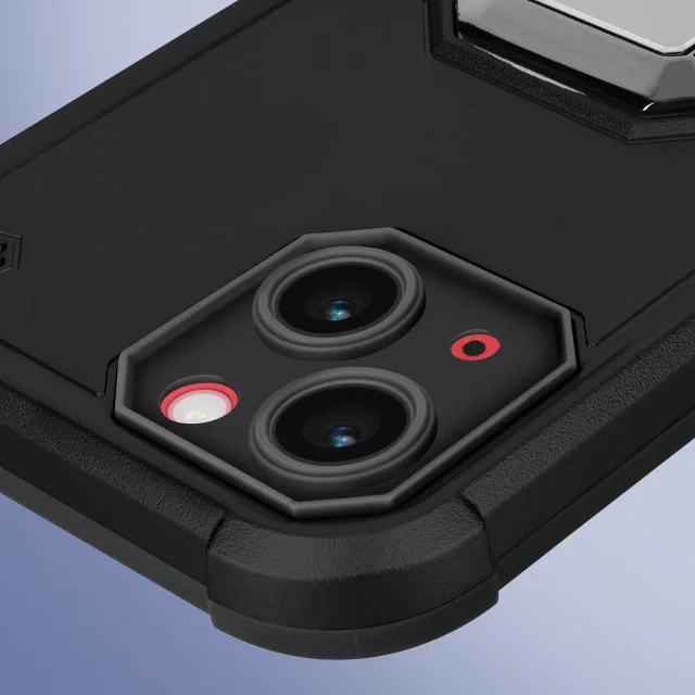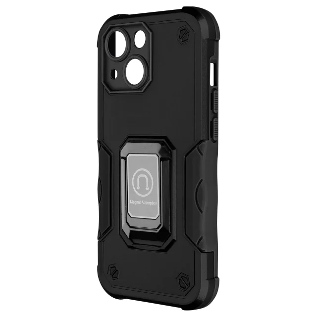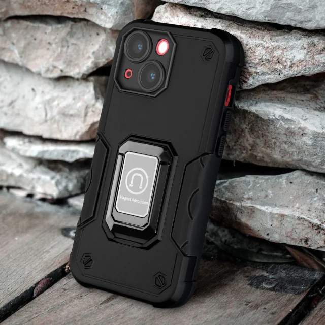 Ovitek za iPhone 14, odporen na udarce, iz dveh materialov, nedrsec in magnetni podporni obroc - crn