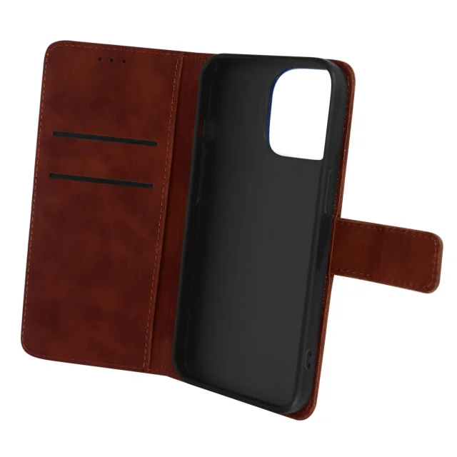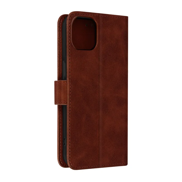 Ovitek za iPhone 14 Plus z zavihkom za denarnico, podporo za video, mat rjava z ucinkom mehkega dotika