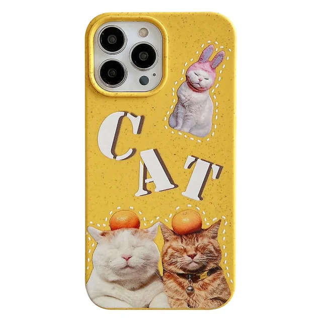 Ovitek za iPhone 14 Pro iz pšenične slame, razgradljiv ovitek za telefon, vzorec, natisnjena lupina telefona