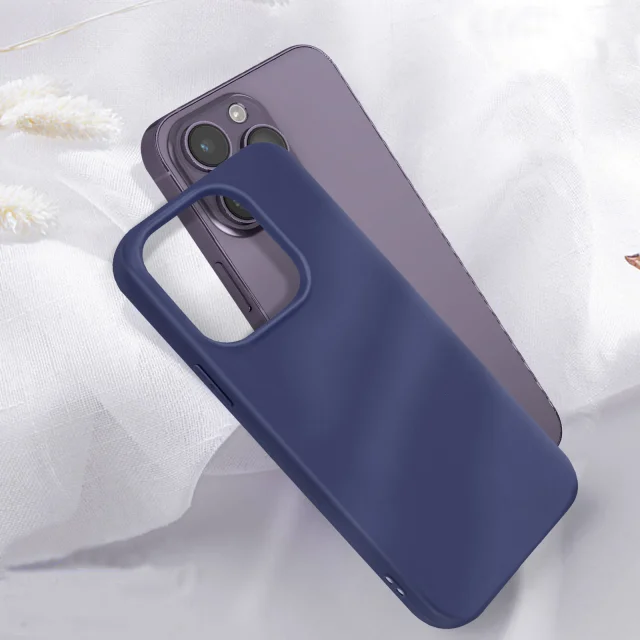 Ovitek za iPhone 14 Pro Max iz mehkega silikonskega gela, mat zakljucek proti prstnim odtisom - temno moder