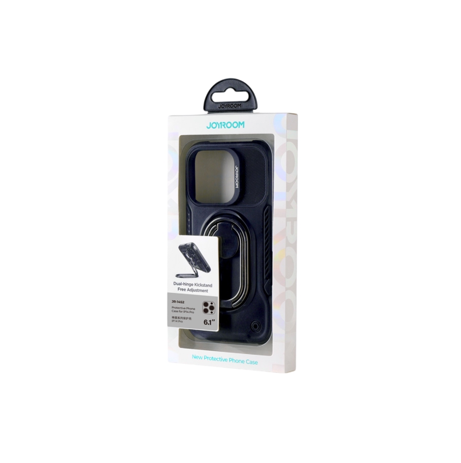 Ovitek za iPhone 14 Pro, oklepni ovitek s stojalom in držalom za prstan, črn