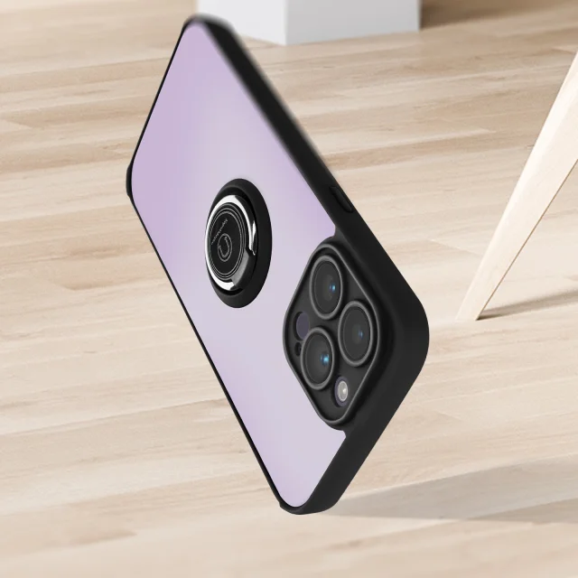 Ovitek za iPhone 14 Pro z držalom za prstan, hrbtna stran z zašcitnim prstnim odtisom, združljiv z magnetnim stojalom - crn