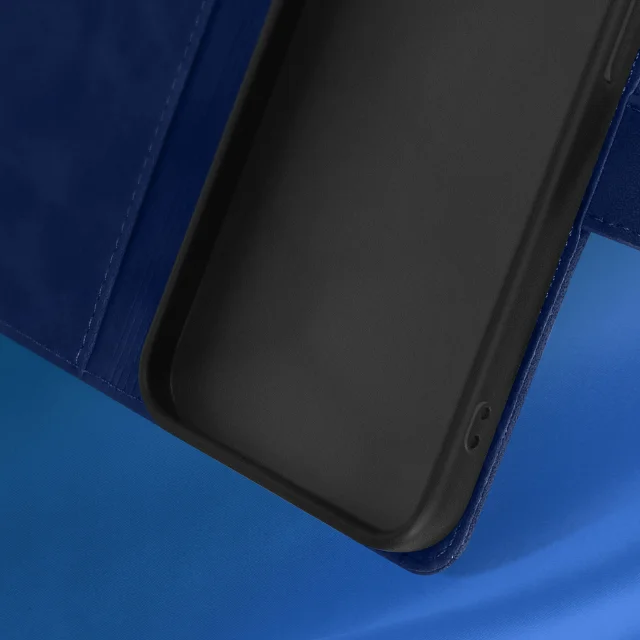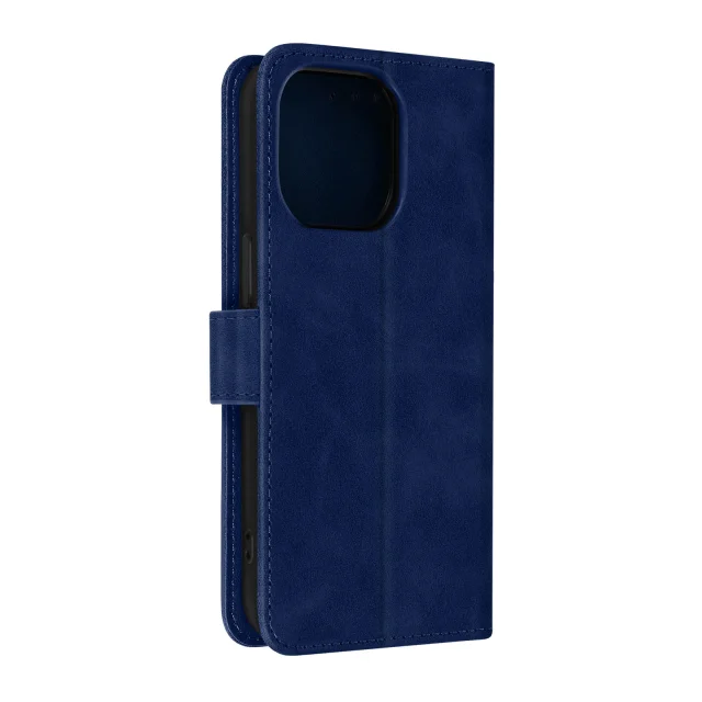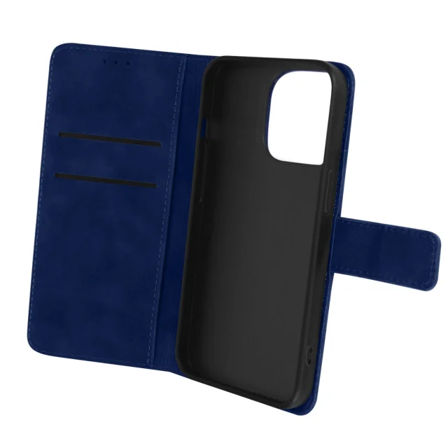 Ovitek za iPhone 14 Pro z zavihkom denarnice, podpora za video, mat soft touch efekt polnocno modra