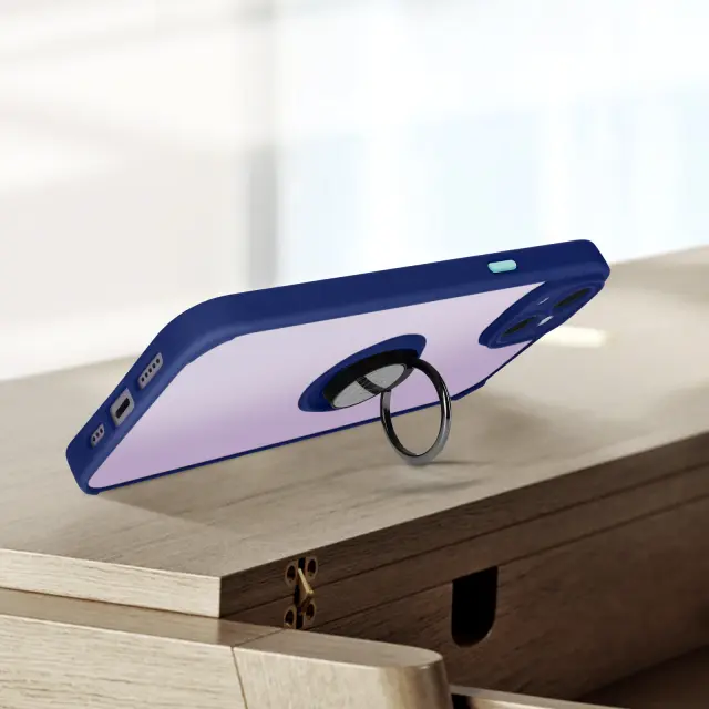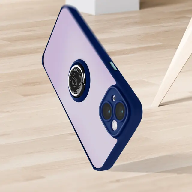 Modra dvomaterialna torbica za iPhone 14, šciti vaš telefon pred udarci in praskami. Zašcita z zadrževalnim obrocem, ki se lahko uporablja kot video nosilec in združljiv z magnetnim nosilcem (ni vkljucen). Mat zakljucek proti prstnim odtisom.