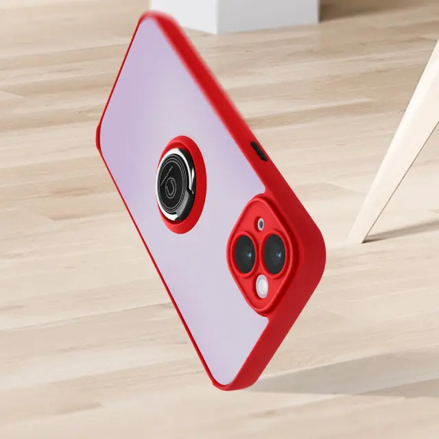 Rdeca dvomaterialna torbica za iPhone 14, šciti vaš telefon pred udarci in praskami. Zašcita z zadrževalnim obrocem, ki se lahko uporablja kot video nosilec in združljiv z magnetnim nosilcem (ni vkljucen). Mat zakljucek proti prstnim odtisom.