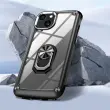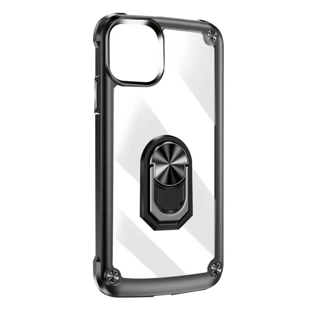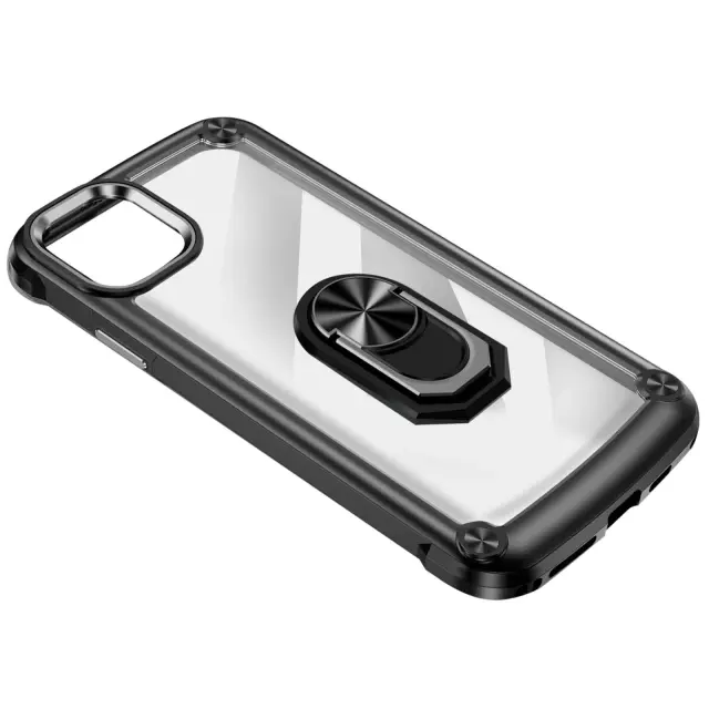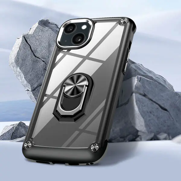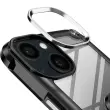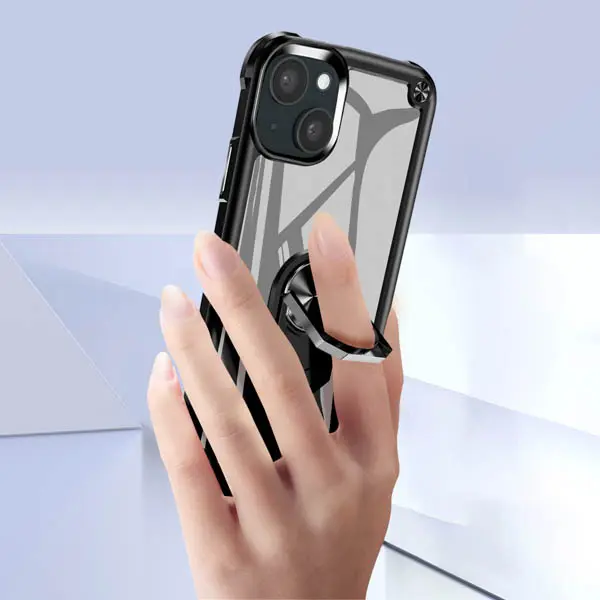 Ovitek Metal Ring Series, zasnovan za učinkovito zaščito vašega iPhone 15 Plus. Združuje mehkobo in trdoto s hrbtno stranjo iz trdega polikarbonata in silikonsko obrobo. Ima dvignjen aluminijast blok kamere in ojačane robove, odporne na udarce. Vgrajen kovinski obroč za varen oprijem vašega mobilnega telefona.
