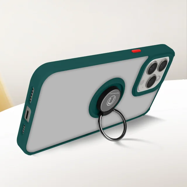 Ovitek za iPhone 15 Pro, kovinski nosilec obroca, serija Ringrip - zelen
