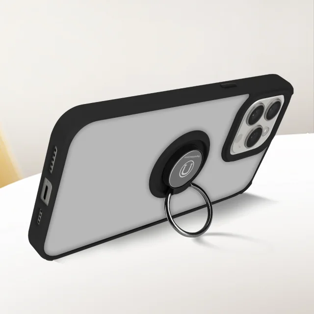Ovitek za iPhone 15 Pro Max, podpora za kovinski obroc, serija Ringrip - crna