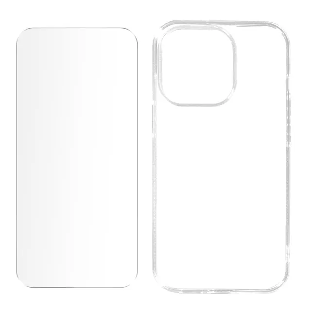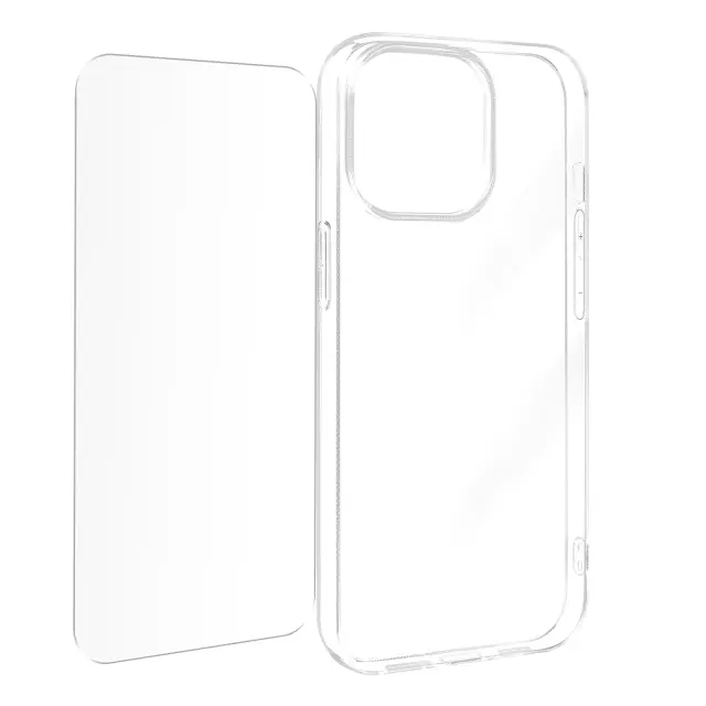 Ovitek za iPhone 15 Pro Max silikonski gel in 9H kaljeno steklo, Prozorno