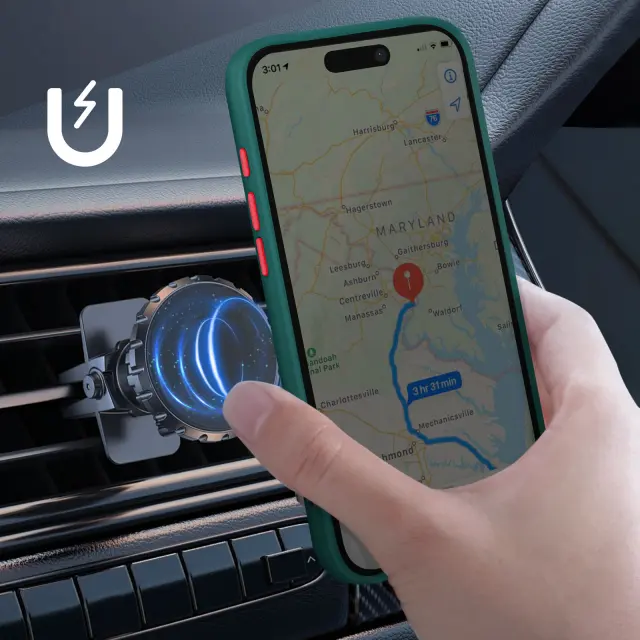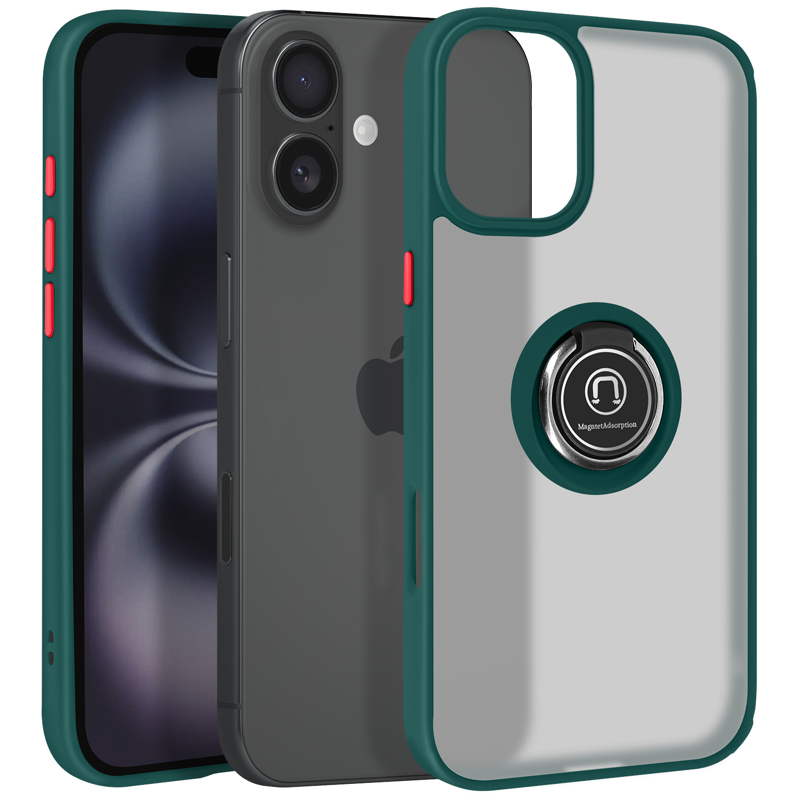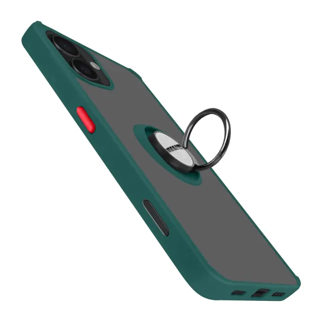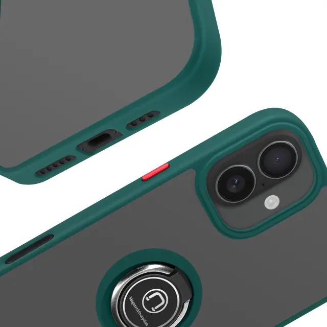 To ohišje za iPhone 16 ima trdno hrbtno stran iz matiranega polikarbonata z mat površino, ki je odporna na praske in sledi.. Temnozeleni okvir TPU absorbira udarce na vogalih in trdno drži pametni telefon na mestu. Kovinski vrtljivi obroč se vrti za 360° in napravo stabilizira v vodoravnem položaju za gledanje ali video klice.. Zaradi feromagnetnega vložka v obroču je ohišje združljivo z magnetnimi nosilci za avtomobile..