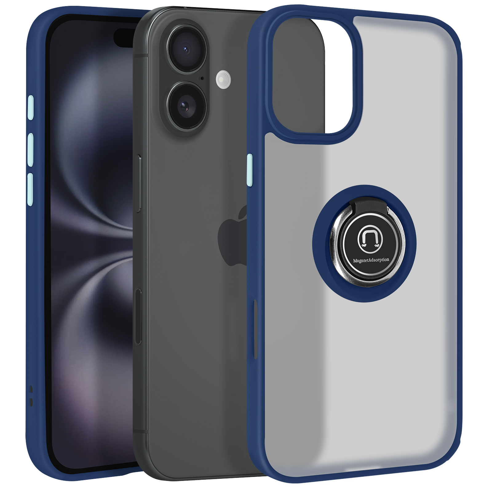 Ovitek za iPhone 16 Plus Bague Métallique Support Vidéo, Modra noč