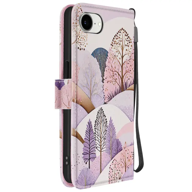 Ovitek za iPhone 16e Motiv pokrajine Večbarvna vrvica s šivanko in držalom za kartico, Večbarvno