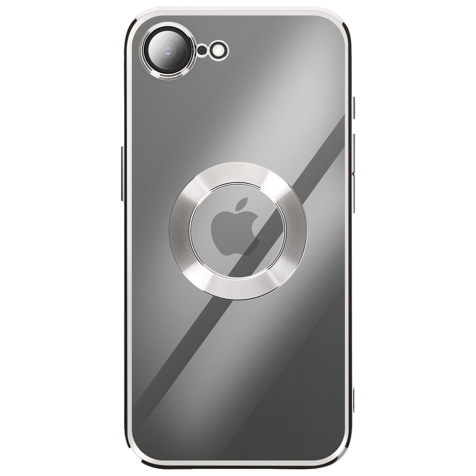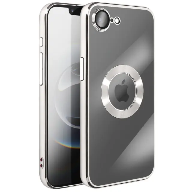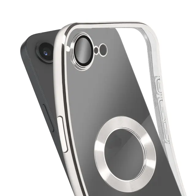 Ovitek za iPhone 16e s Kromiranim Robom iz Mehkega Silikona, Srebrna