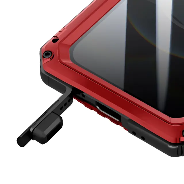 Integrirana zaščita pred vodo, prahom, udarci in močnimi padci. Kovinsko in silikonsko ojačana struktura, skladna z vojaškimi standardi. Vgrajeni zaščitni zaslon ohranja odzivnost na dotik. Vijačno zapiranje in pokrov priključka za dolgotrajno vodotesnost.