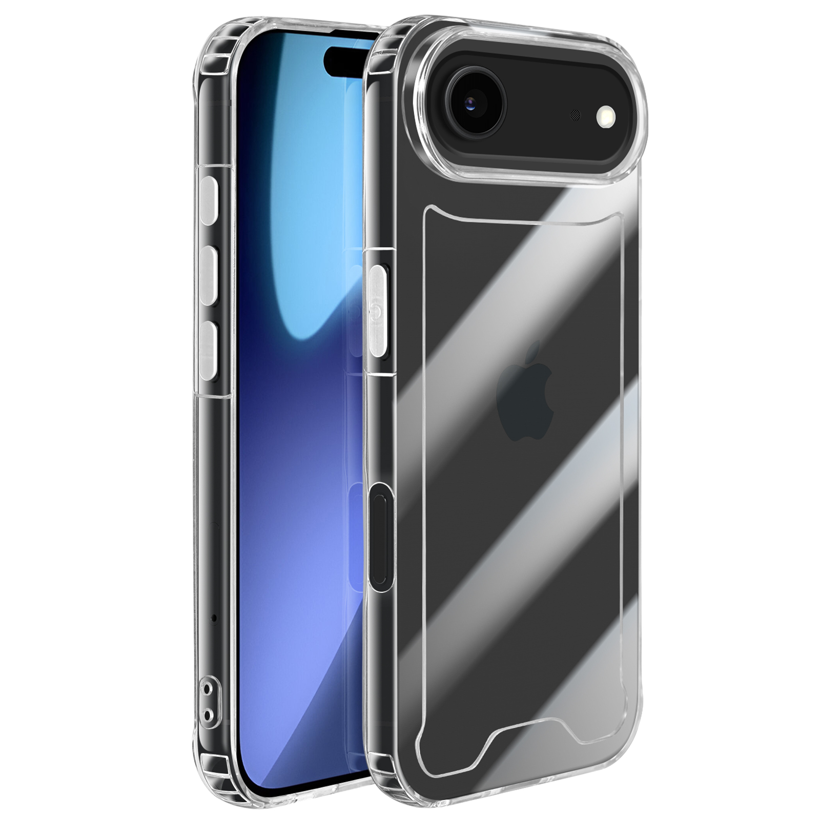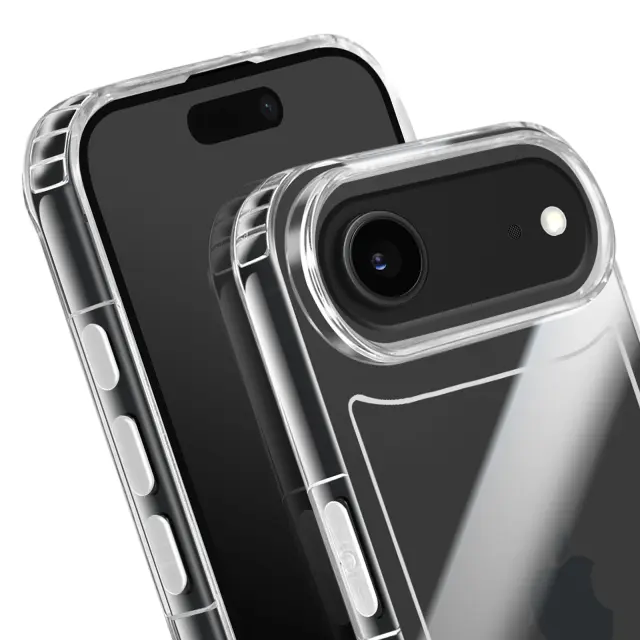 Ojačani vogali za največjo zaščito pred udarci. Trdna polikarbonatna hrbtna stran za zaščito pred praskami. Mehka silikonska oblika za optimalno absorpcijo udarcev. Prozorna zasnova, ki izboljša estetiko telefona iPhone 17 Air.