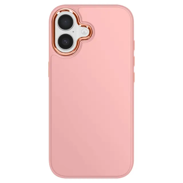 Poltrdna silikonska in polikarbonatna struktura odlično absorbira udarce, hkrati pa ohranja tanko in elegantno obliko.. Dvignjena obdaja kamere s kovinskim zaključkom, ki učinkovito ščiti objektiv pred praskami in hkrati dodaja dizajnerski pridih.. Sijajni stranski gumbi s kovinskim učinkom, odzivni in prijetni na dotik za vsakodnevno udobje. Prašno rožnata mat površina v kontrastu s sijajnimi elementi za trezen, sodoben in vrhunski videz..