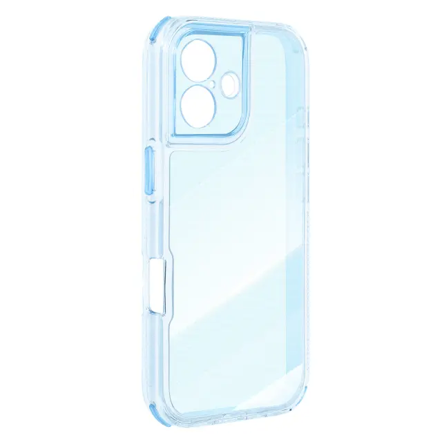 Struktura iz dveh materialov, mehkega silikona in togega polikarbonata, za trajno zaščito pred udarci in praskami. Ojačani vogali so posebej zasnovani tako, da absorbirajo udarce in zmanjšajo tveganje v primeru padca.. Teksturirane nedrseče oblike za varen in udoben oprijem pri vsakodnevni uporabi. Dvignjeni robovi za zaščito zaslona in kamere.