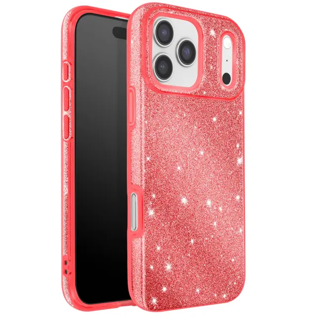 Ovitek za iPhone 17 Pro Max, dvobarvna zasnova in bleščeča obdelava, Rdeča