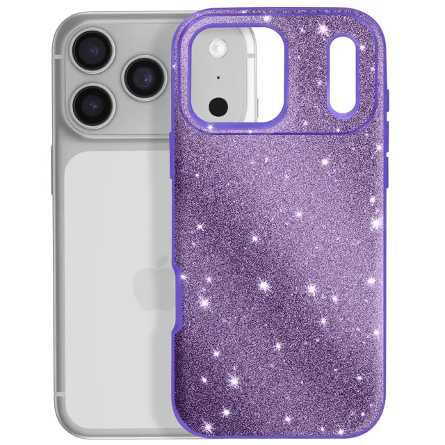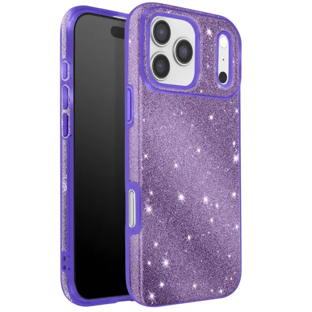 Ovitek za iPhone 17 Pro Max, dvobarvna zasnova in bleščeča obdelava, Vijolična
