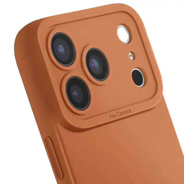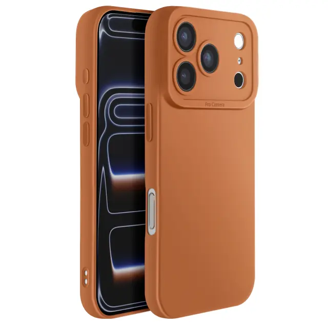 Ovitek za iPhone 17 Pro Max iz mehkega silikona z ojačanim blokom kamere, Rjava