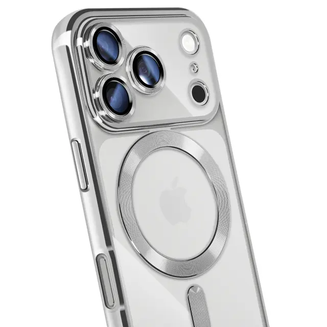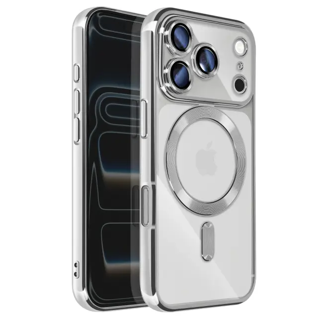 Združljiv z MagSafe z vgrajenim magnetnim obročem. Zanesljiva zaščita pred praskami, udarci in manjšimi padci. Elegantna kromirana obdaja za sodoben, vrhunski zaključek. Prozorna lupina, ki poudarja izvirno zasnovo pametnega telefona.